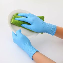 Guantes desechables de nitrilo sin polvo vinilo azul protectores y antideslizantes para pantallas táctiles dientes multiusos